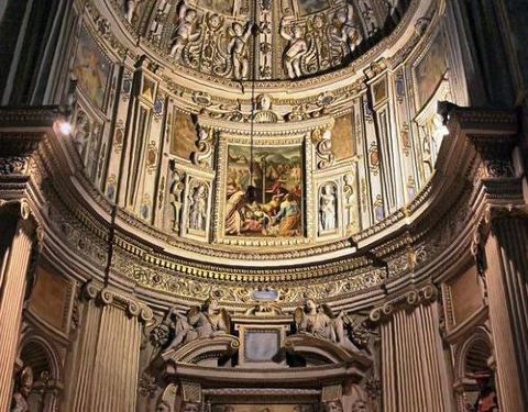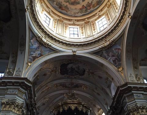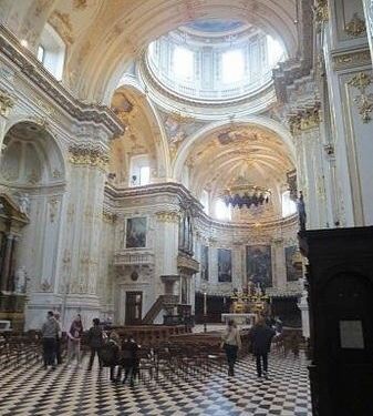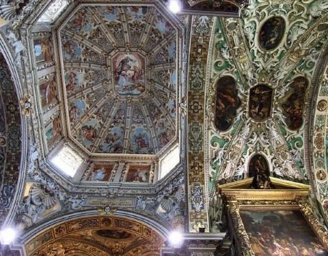 贝加莫大教堂明显的巴罗克风格,内部墙上和柱子、天顶全是精美的壁画!