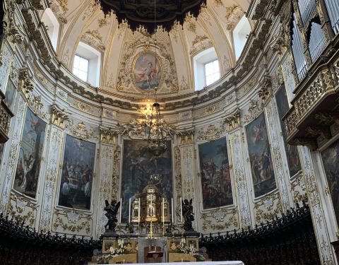 与旁边的圣母教堂相比 主教堂显得比较安静 罗马式教堂 纯白的的建筑外观及椭圆形拱顶里面庄严肃穆 教堂的装饰很值得慢慢欣赏