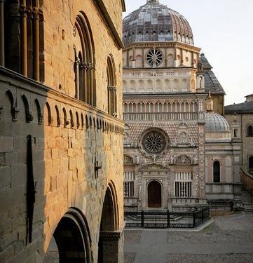 贝加莫的大教堂虽然是巴罗克风格但是外观很古朴建筑用的不是大理石而是一种质地比较软的黄土色石头容易被风化。所以更焕发出中世纪古老的光芒。
