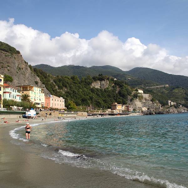 狭长的海岸线形成美丽的风景,不怕太阳晒的可以坐在沙滩上,聆听地中海的声音五渔村中相对来说最有意思的渔村,因为可以下海游泳,有海滩可以晒日光浴,有兴趣的话一定要带好装备。狭长的海岸线形成美丽的风景,不怕太阳晒的可以坐在沙滩上,聆听地中海的声音。
