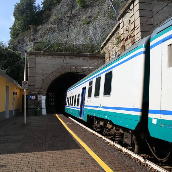 从意大利各大城市都有火车前往五渔村附近的城市拉斯佩齐亚(LaSpezia Centrale),然后在那里换乘慢车到各个村子(车程为10到20分钟不等),五渔村有区间小火车,火车站位于每个村庄的入口,除了科尔尼利亚。科尔尼利亚地处悬崖之上,下了火车后还需爬台阶或坐大巴才能到达村庄内。