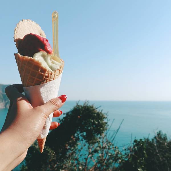 冰淇淋的味道的确不错,一边舔着一边下山去。意大利有很多冰淇淋店,土耳其也是。登高望远,一览众山小从明信片地标村出来,现在去第三个渔村【Corniglia】,如果你时间不够,这个村就不用来了,可以把时间集中在第二个村里。等候火车的时间也是很美丽,真正的海景铁路,望过去一片闪着光的蓝色。去第三个渔村,要爬...从明信片地标村出来,现在去第三个渔村【Corniglia】,如果你时间不够,这个村就不用来了,可以把时间集中在第二个村里。等候火车的时间也是很美丽,真正的海景铁路,望过去一片闪着光的蓝色。去第三个渔村,要爬很长一段山路,步行来回就要40多分钟。当然去村庄也有专门街道游客的小型公交车,但你必须排队等待,我不喜欢等待,自己爬上去。登高望远,一览众山小。不一会儿就从火车站爬到了半山腰,半山腰上依然有个色彩小村庄。意大利有很多冰淇淋店,土耳其也是。我不爱吃甜食,但冰淇淋在这两个国家太出名了,舔一只吧。山腰上的小镇里就有很多家冰淇淋店,要不你也来尝尝。小镇不大,房屋也是意大利式的,米黄色和墨绿色相见,也有观景台和小商业街。在小镇里坐了坐,晒了会太阳,临走前买了一只冰淇淋下山。冰淇淋的味道的确不错,一边舔着一边下山去。吃之前还不忘拍个照,赶紧吃吧,都快化了...... 展开