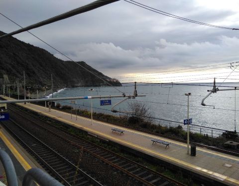 从意大利各大城市都有火车前往五渔村附近的城市拉斯佩齐亚(LaSpezia Centrale),然后在那里换乘慢车到各个村子(车程为10到20分钟不等),五渔村有区间小火车,火车站位于每个村庄的入口,除了科尔尼利亚。科尔尼利亚地处悬崖之上,下了火车后还需爬台阶或坐大巴才能到达村庄内。