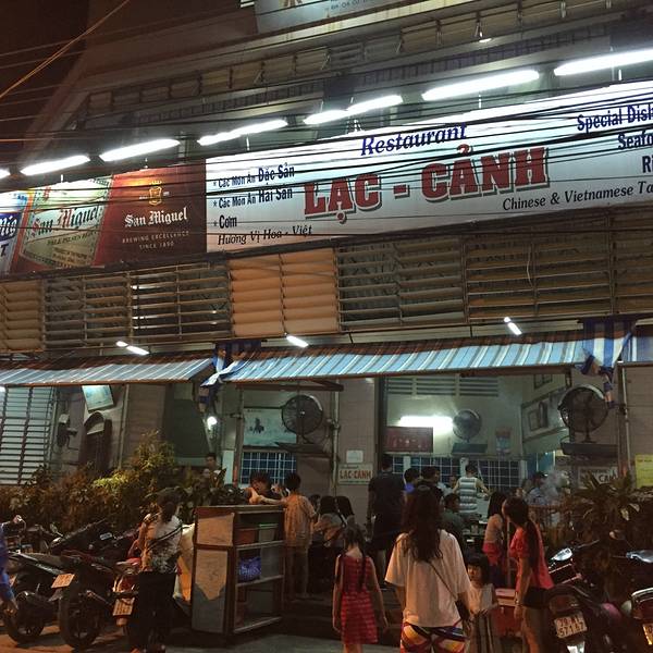 几张简易桌子,几个塑料靠椅,旁边再立个电风扇,就是Lac Canh的就餐环境了,相当平民。Lac Canh的特色在于矮炉的烧烤方式,里面放几块炭火,上面架上架子,然后就可以开始烧烤啦!点好的虾、鱼、肉都可以放在上...