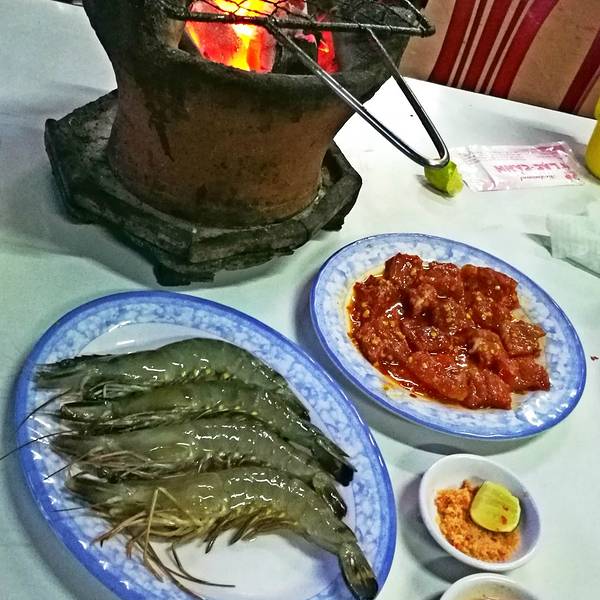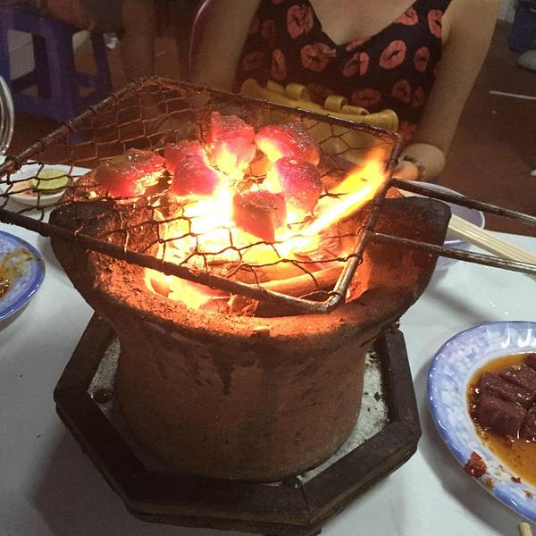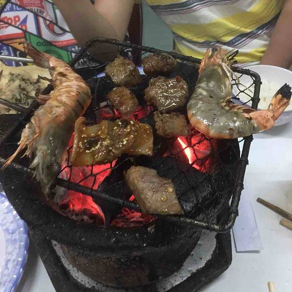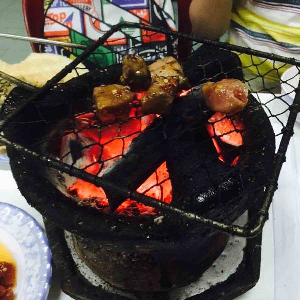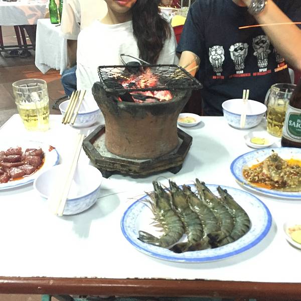这里应该是芽庄人气最旺的餐厅之一了,空间也不大,还没有空调,但是来这里吃的人特别多...烧烤用的炉子非常原始,下面烧炭火,上面架一个网架,然后就可以开始烧烤了,推荐牛肉,是事先腌过的。跟姐姐两个人一起...