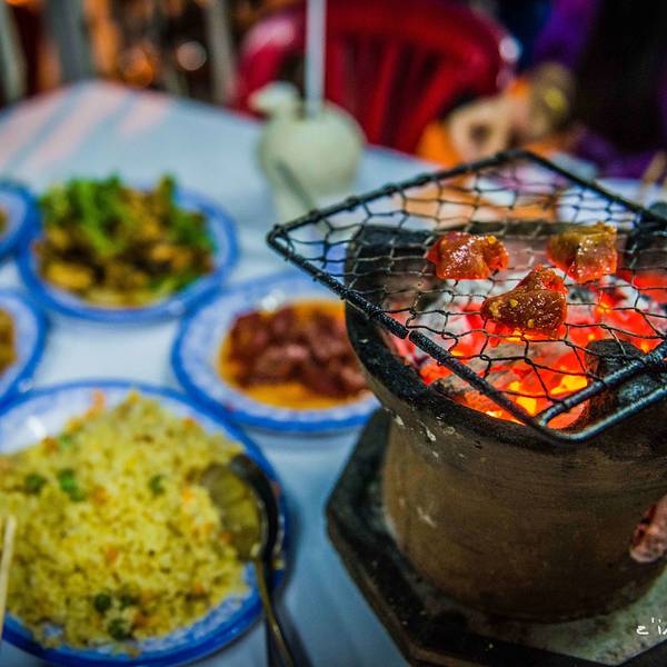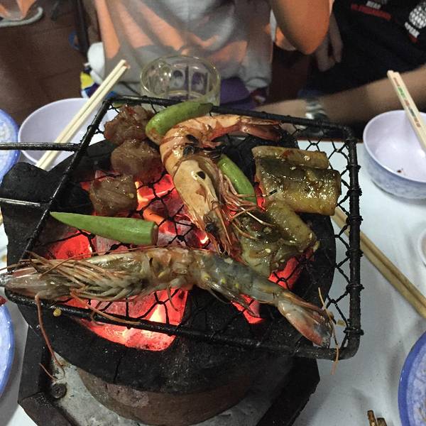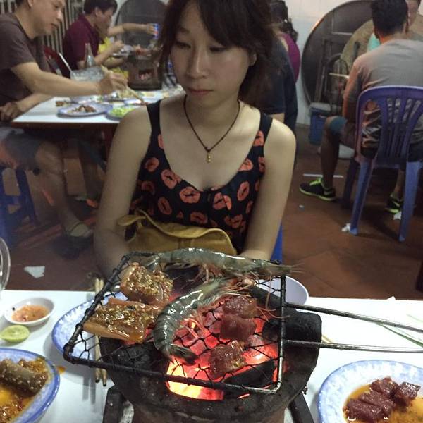 这里应该是芽庄人气最旺的餐厅之一了,空间也不大,还没有空调,但是来这里吃的人特别多...烧烤用的炉子非常原始,下面烧炭火,上面架一个网架,然后就可以开始烧烤了,推荐牛肉,是事先腌过的。跟姐姐两个人一起...这里应该是芽庄人气最旺的餐厅之一了,空间也不大,还没有空调,但是来这里吃的人特别多...烧烤用的炉子非常原始,下面烧炭火,上面架一个网架,然后就可以开始烧烤了,推荐牛肉,是事先腌过的。跟姐姐两个人一起吃了八十块左右,还是很值的。