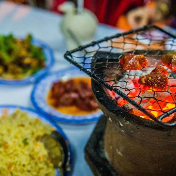 一家在当地非常有人气的餐馆,主打就是这种小土炉的自助烧烤