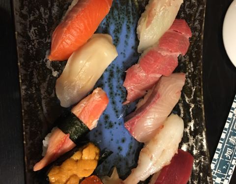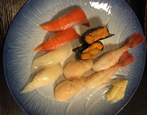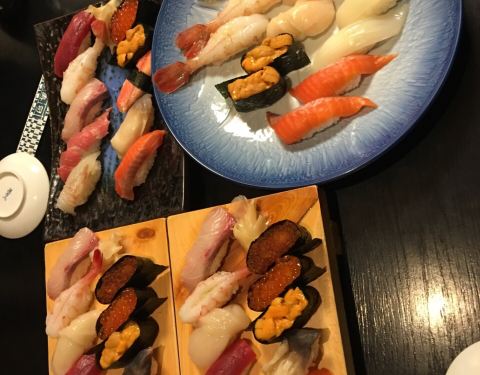算是当地的老字号了,寿司做的很不错,点了寿司拼盘,还有大号的甜虾和扇贝肉,太棒了,都很新鲜,毕竟靠近海边,寿司师傅会在边上观察你的感受。