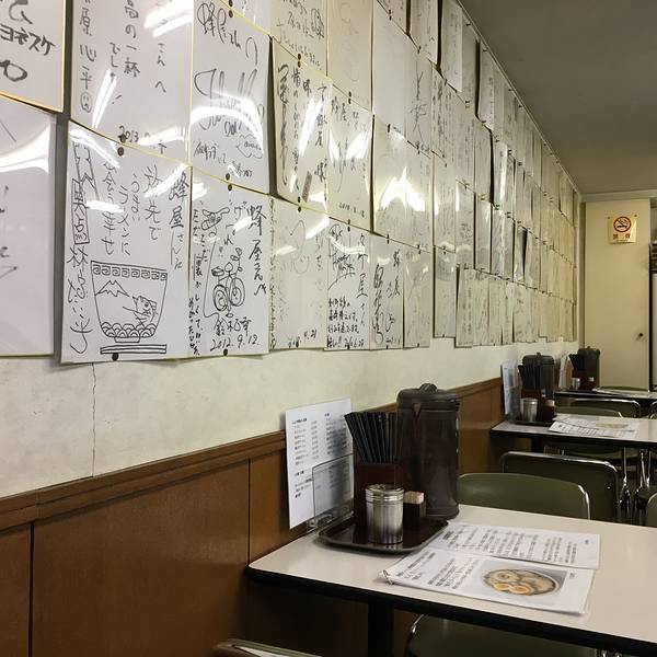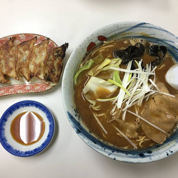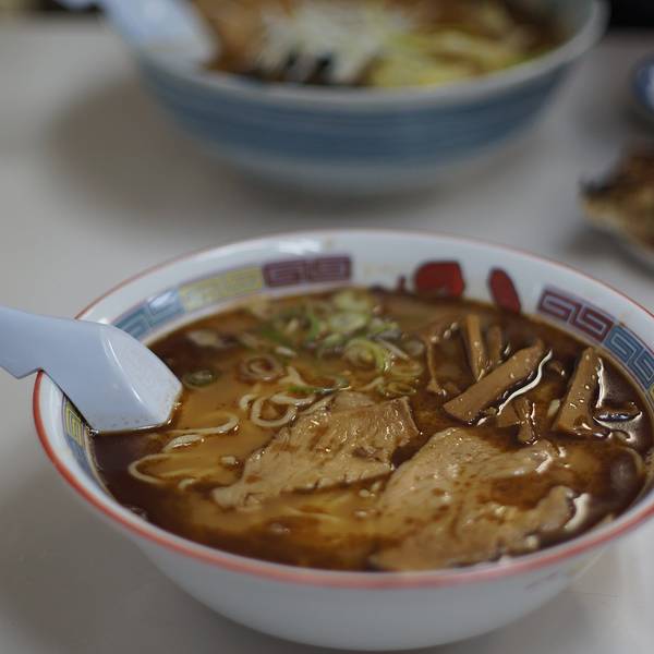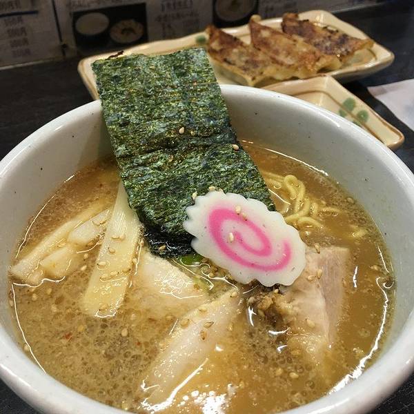 蜂屋是旭川的拉面名店,曾经打败过梅光轩登顶人气最高拉面王~店内主打味道浓厚的酱油味拉面,面条筋道,叉烧软嫩,配上酱油汤头,入口有一种难以形容的熟透的熏香味道,一碗下去,驱寒暖心,一不小心就会上瘾。楼主献上地址——蜂屋拉面位于北海道旭川市5条通7丁目右6,步行的话,从JR旭川站出站沿着绿桥通向北直行,遇到7丁目路口左转,至5条通9丁目左转,直行即可到达,全程需徒步10分钟。可以拿google map导航,比较好找~店家营业时间:10:30-19:50,12月31日-1月1日休息。人均消费在900円(约54人民币)左右。店内还出售自家的酱油拉面调料包,有兴趣的朋友们不要错过哦~15:30左右我们伴着飘飘摇摇落下的中雪,深一步浅一步的找到这家位于5.7小街的蜂屋拉面店~5.7小街是很有名的创业美食街,这条街道两侧的美食有居酒屋、烤肉店、炸物店等等,然而这个时间,店铺们都紧闭大门,隔着玻璃能看见店家紧张的擦拭桌面和准备食材。 深怕蜂屋拉面没到营业时间,会让我们两个饥肠辘辘的人等在门外,结果拉开门的一瞬间,店家的一句“欢迎光临”让我们激动不已。店子里面装修非常简单,就是排列整齐的白色桌椅,只是右手边的一整面墙,从入口处到料理台,全部贴着名人前来吃拉面留下的赞言(你问我看不懂日文为什么会觉得是赞美,我觉得不是赞美店家也不会蠢到贴出来吧~)。落座后,店家会照例端上来两杯水和两份菜单,我们基本没犹豫的就点餐了,绝对要吃心心念念的酱油拉面~ 酱油拉面是我们到日本之后吃的第三种拉面了,酱油拉面作为一种日本拉面的分支,也有着庞大人数的追随者,它的汤体没有豚骨拉面和盐拉面那么好看,不闪亮光泽,还黑乎乎的一片~听说最浓郁的酱油拉面,将碗倾斜,汤汁是不会洒出碗外的哦~ 我们点了两份酱油拉面,加点了一份煎饺和一瓶生啤,也不知道为什么日本人吃拉面喜欢配饺子,总之不管去哪个拉面店都会有这样一种套餐。吃面之前舀一勺汤头尝尝味是拉面老饕的正确吃法,一口浓汤下去,尝到浓郁的烟熏风味,加上酱油的甘香,食指大动,因为肚饿的缘故,一碗酱油拉面呼噜噜瞬间下肚,这才想起吃一颗饺子搭配一下味觉。酱油拉面独特的口感的风味我是非常喜欢啦,只是个人认为稍微有点咸,去吃过的同志们们也给我留言说说吃后感呗,超级想跟大家交流交流吃面感想。
