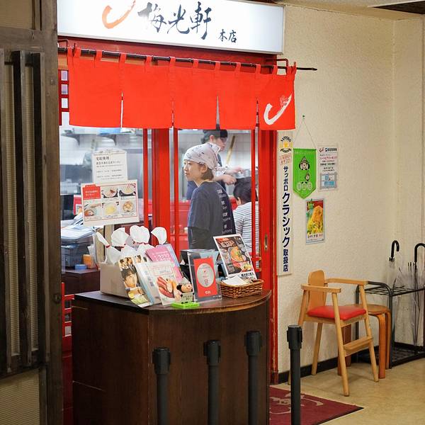 梅光轩是日本昭和44年也就是1969年在旭川的起家的一家老字号拉面店,这家梅光轩旭川本店也就是它的第一家店,也是旭川的八大拉面之一,曾经获得过第一届旭川拉面大赏最优秀拉面奖,也获得过2012年的北海道米其林推介,现在已经在日本国内及世界各地都开设了多家分店。旭川本店的位置在旭川JR站正对着的步行街上,具体位置是在2条8丁目Piazza大厦的B1层。店铺很不起眼,在一层的门口只有一个小的牌子写着梅光轩。店铺的面积也不大,墙上贴满了各种明星名人的签名,找了一圈也没找到我认识的不过看上去就觉得这家店真的很厉害。店里只有四张这样的桌子,剩下的就是在拉面制作台周围一圈的座位。菜单上的拉面也就是简单的几种汤底,搭配不同的料比如蔬菜、豚肉等。点了一份小碗酱油蔬菜拉面,一份酱油豪华拉面(只有标准碗),耐心等待的时候看看小哥做拉面的过程也十分愉悦。其实梅光轩也是我们在北海道的第一顿外食,之前两顿都是酒店的一泊二食包晚餐,于是赶快点了一杯札幌啤酒解解馋。蔬菜拉面上来啦,上面铺着满满的料,料多得连面都挑不上来。下面这碗是豪华搭配,又肉有蛋还有满满的蔬菜,真的够两个女生吃的!尽管是酱油拉面,但汤底还是保留了鲜味,颜色也并不深。单就口味来讲的话我更喜欢豚骨汤底的,味道更浓厚一些。但这家店真的量很大,根据价格点菜是没错的,这一碗豪华标准的拉面价格在1500円左右,足够两个女生吃。我们大概四五点到的店里,完全不会排队,但陆陆续续的有很多 日本 当地人来店里,一个人来吃的也不少。