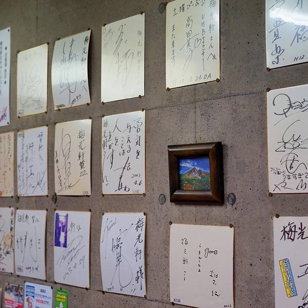 北海道拉面在整个日本都是有名的,而很多人想到北海道拉面的第一印象也是旭川拉面。 在北海道,札幌的味增拉面,函馆的盐味拉面,旭川的酱油拉面,不同地区的拉面都各有各的特色。来了旭川怎么能不尝一碗酱油拉面呢? 梅光轩是日本昭和44年也就是1969年在旭川的起家的一家老字号拉面店,这家梅光轩旭川本店也就是它的第一家店,也是旭川的八大拉面之一,曾经获得过第一届旭川拉面大赏最优秀拉面奖,也获得过2012年的北海道米其林推介,现在已经在日本国内及世界各地都开设了多家分店。旭川本店的位置在旭川JR站正对着的步行街上,具体位置是在2条8丁目Piazza大厦的B1层。店铺很不起眼,在一层的门口只有一个小的牌子写着梅光轩。店铺的面积也不大,墙上贴满了各种明星名人的签名,找了一圈也没找到我认识的不过看上去就觉得这家店真的很厉害。店里只有四张这样的桌子,剩下的就是在拉面制作台周围一圈的座位。菜单上的拉面也就是简单的几种汤底,搭配不同的料比如蔬菜、豚肉等。点了一份小碗酱油蔬菜拉面,一份酱油豪华拉面(只有标准碗),耐心等待的时候看看小哥做拉面的过程也十分愉悦。其实梅光轩也是我们在北海道的第一顿外食,之前两顿都是酒店的一泊二食包晚餐,于是赶快点了一杯札幌啤酒解解馋。蔬菜拉面上来啦,上面铺着满满的料,料多得连面都挑不上来。下面这碗是豪华搭配,又肉有蛋还有满满的蔬菜,真的够两个女生吃的!尽管是酱油拉面,但汤底还是保留了鲜味,颜色也并不深。单就口味来讲的话我更喜欢豚骨汤底的,味道更浓厚一些。但这家店真的量很大,根据价格点菜是没错的,这一碗豪华标准的拉面价格在1500円左右,足够两个女生吃。我们大概四五点到的店里,完全不会排队,但陆陆续续的有很多 日本 当地人来店里,一个人来吃的也不少。
