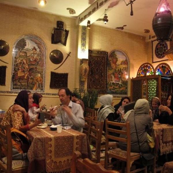 位于巴扎深处,如果不是有明显的路牌指引,恐怕很难找到。餐馆不大,一共8张桌子。餐馆内吊灯和地毯的装饰很具有伊朗特色,灯光昏暗,气氛十分闲散。可以在这里点正餐比如dizi等,也可以点上一壶茶一叠蛋卷。这种蛋卷是设拉子到处都有出售,但这家茶馆做的格外好吃,8万里亚尔一份6个,曾经有人在这里连点了8份!