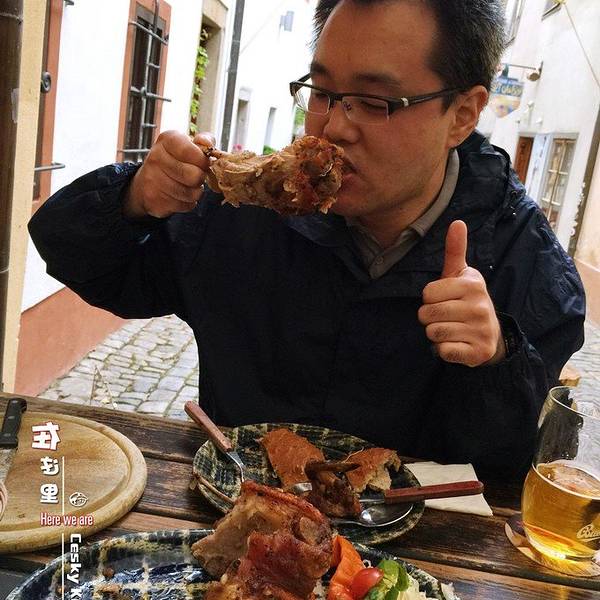 晚饭我和小米选择的是CK小镇最著名的KRCMA SATLAVA地窖餐厅,地窖餐厅是我在出发前就已经写邮件预定好的,餐厅回复邮件速度挺快,大概也就半个小时就会知道是否预定成功。在地窖餐厅我们又吃了一次烤大猪肘子,这...晚饭我和小米选择的是CK小镇最著名的KRCMA SATLAVA地窖餐厅,地窖餐厅是我在出发前就已经写邮件预定好的,餐厅回复邮件速度挺快,大概也就半个小时就会知道是否预定成功。在地窖餐厅我们又吃了一次烤大猪肘子,这个量两个人点一份绝对够够的,在来点啤酒,要是能有凉菜或者花生米就更好了。在地窖餐厅,遇到都是咱国人,有上海的、还有浙江的,最多的还是台湾人,我们还遇到了一个20人左右的台湾旅行团,导游直接放话酒管够喝,不要客气,搞的我以为在东北。也不知道怎么地窖餐厅的名气这么大,如果没有提前预定的话,周围的餐馆也都不错。