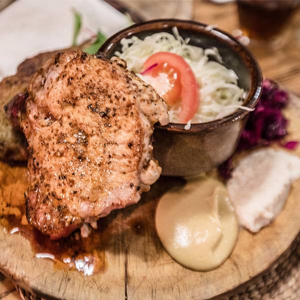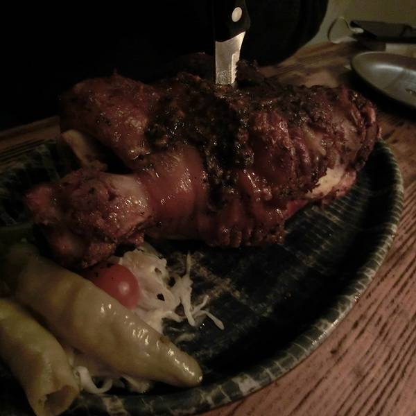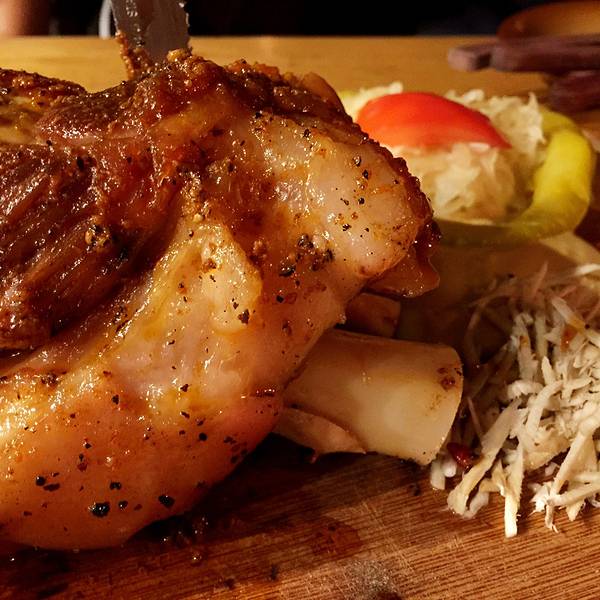 餐厅内部的装饰就像身处藏酒地窖,故而得名。实际上它是坐落于旧监狱的旧址,拱形天花板,石头墙壁,巨大的烤炉和木柴,装饰特别...年夜饭就订在最著名的洞穴餐厅,几乎在每一篇CK小镇的游记中都会被提及的大肘子。