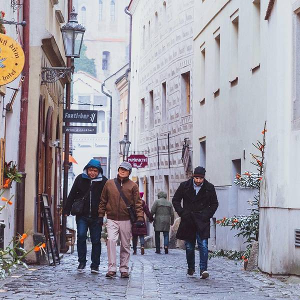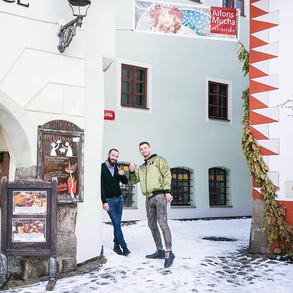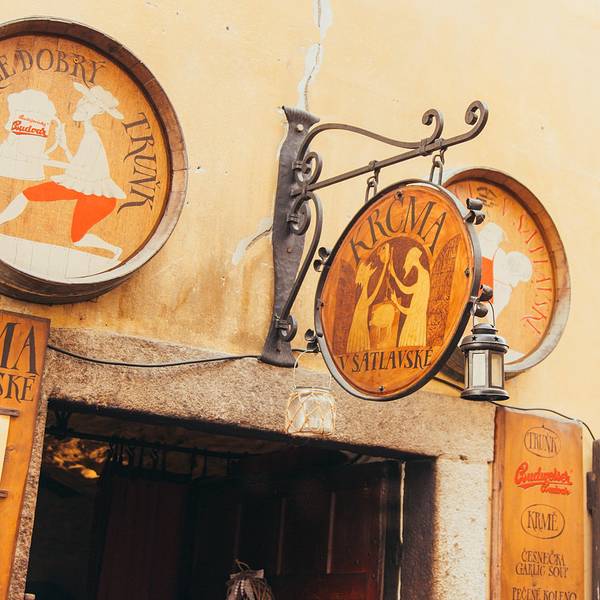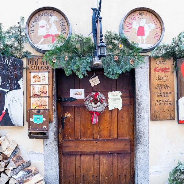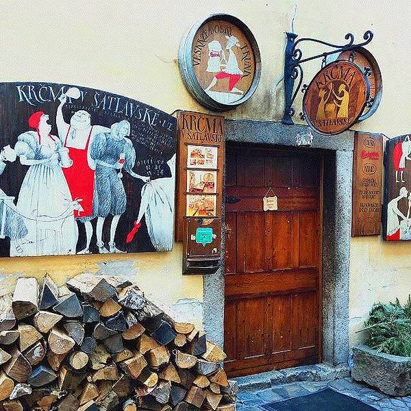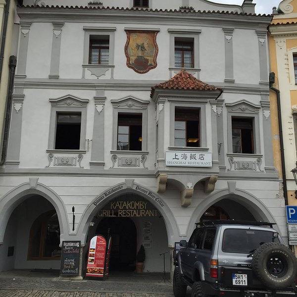 按照之前在网上查好的地址,寻找洞穴餐厅Krčma v Šatlavské。(相传很不好找滴说)这条小巷子正好可以窥看到彩色塔的身姿,而地窖餐厅就在巷子里,真是转角遇到爱,得来全不费工夫。果然名不虚传的木有座位,...按照之前在网上查好的地址,寻找洞穴餐厅Krčma v Šatlavské。(相传很不好找滴说)这条小巷子正好可以窥看到彩色塔的身姿,而地窖餐厅就在巷子里,真是转角遇到爱,得来全不费工夫。果然名不虚传的木有座位,全部提前reserved,作罢,还好外面有位置,可是真心冷~小二,啥时才能上菜呀,姐姐偶等得酒都喝完啦。来到CK小镇,一定要尝尝这家的烤猪肘子&烤猪膝盖。头几日在捷克没少大肉大肉,但这家绝对味道正宗,量很大,价格也合理(虽然涨价了~)。一般大家都是在网上提前至少一个月订好位子,我们正好赶上个日本团把里面都占满了。全部现烤滴,等待时间也稍久些,在外面冻滴偶灵魂都出窍了,去里面暖和暖和,垂涎欲滴的盯着滋滋作响的烤肉们,再次出窍。