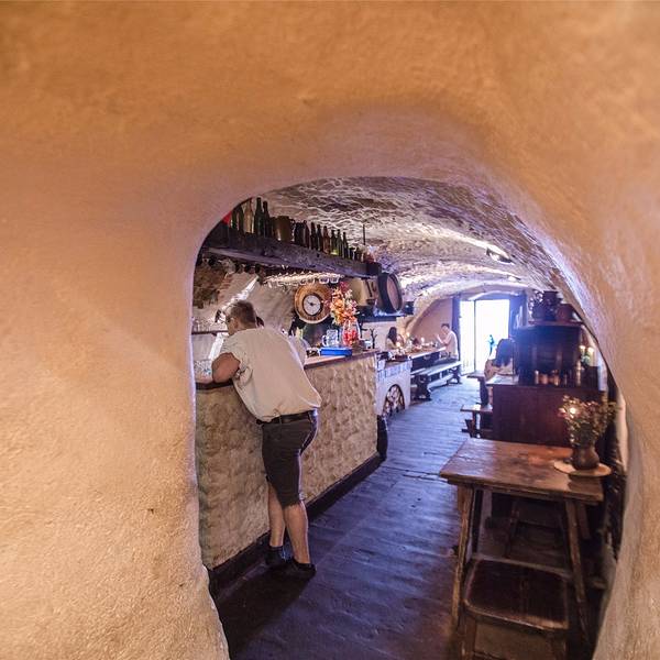 餐厅内部的装饰就像身处藏酒地窖,故而得名。实际上它是坐落于旧监狱的旧址,拱形天花板,石头墙壁,巨大的烤炉和木柴,装饰特别,也让人很有食欲。餐厅内的大部分就餐区是完全没有窗户的,就像真的坐在地窖里用餐一样。