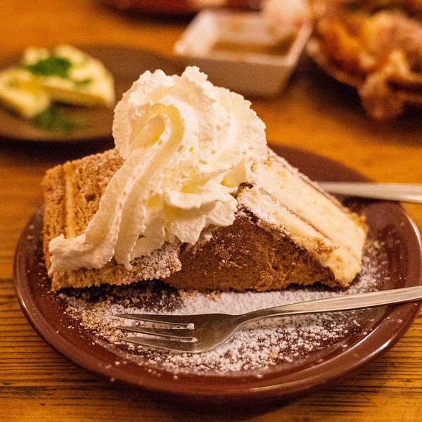 - 蜂蜜蛋糕倒是真的好吃,光盘。这家洞穴餐厅,也是这样被我们发现的