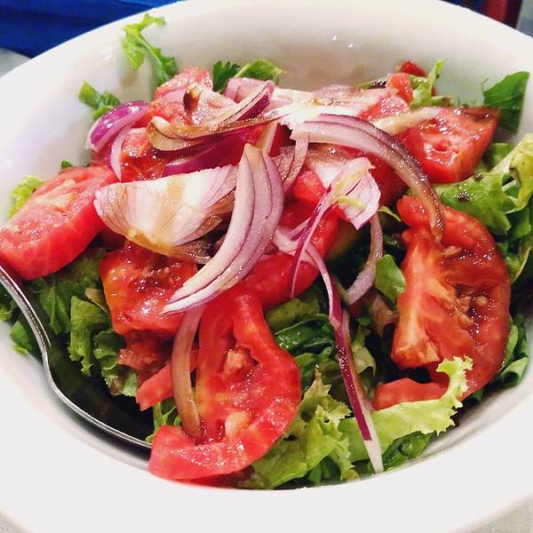 鱼市中心是鱼摊,周围是餐厅,正常的点菜流程是选好餐厅,问好价钱之后让餐厅去买鱼,或者你跟着餐厅的人一起去选鱼。我之前也没怎么仔细看攻略,倒是记得中间的鱼摊只卖,不加工,都是买好了之后给餐厅加工,但是顺序没记住哈,我们进来就直奔鱼摊就去了,选好了要的东西之后,付完钱,鱼摊老板随手指了一个站在空地上的小伙子,说他会帮我们做。然后这个小伙子让我们选座位,说再给他10TL,我不明白为什么,他英语也不利索,又叫了另一个厨师过来解释完了我才知道我们的流程反了哈,所以也就是说鱼摊那个老板的随手一指,就已经是帮我们选了餐厅😂而且也不能干吃海货呀,得点点菜和喝的吧,这些都是要付给餐厅的,前面那个小伙子问我要的10TL是加工费。我跟Rainie午饭吃得太晚,这会也不太饿,就点了几个凉菜,其中厨师推荐的那个茄子肉末的凉菜挺好吃~