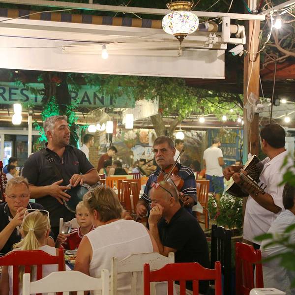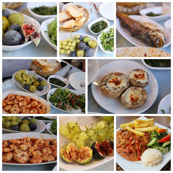 渔市比想象中小多了,渔市附近也都是一些卖副食水果的市场,海鲜比较新鲜。最爱的土耳其无花果,第一次吃到新鲜的无花果,美味这里都不算太便宜,但对景区来说在可接受范围之内,选好海鲜,再挑一家旁边的餐馆,摊主会把海鲜给你送过去给餐馆加工,里面拉客的不少,大家随便挑吧,我觉得应该都差不多价格。觉得价格还公道,服务态度也不错,鱼市另一边是卖瓜果蔬菜的,土耳其水果都很便宜,大家可以敞开肚子吃很不错的小乐队,让整个鱼市场都动听了起来晚餐就是这些,买好的水果会帮你洗好,鱼大部分都是用烤的,虾的味道很不错,芝士烤蘑菇非常好吃