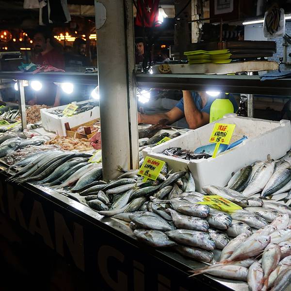 买完票özgür把我们送回镇上,我跟Rainie去了鱼市吃晚餐。鱼市挺好找的,外面的店有些都关了,但是一进到鱼市,果然很热闹~在里面想拍张热闹景象,一拿起相机就有人招呼你给他拍一张。。有个大爷一直围着我转,...