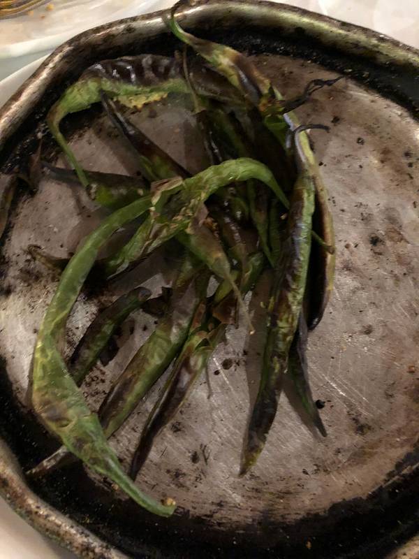 - 经典烤肉。这烤鱼还蛮好吃的~这碟鱿鱼很好吃~少有的绿色蔬菜,烤辣椒。可以自己选择材料去旁边的饭店加工