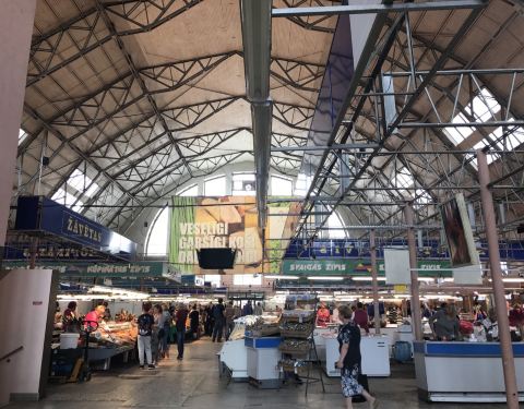 就在里加老城的东侧,挨着里加中央汽车站。五座齐柏林飞艇的机棚看着倒是没有想象中的大,不过堆在一片还是一个很大的市场。天气好的时候外头室外也有很多摊位,很多买各种新鲜蔬果,室内每个棚各有不同,有的卖海鲜,有的卖家禽家畜,有的卖乳制品,有的卖腌制蔬菜,也有一些餐厅。有时间不妨一逛,算是里加挺有人间烟火味的一个地方了吧。