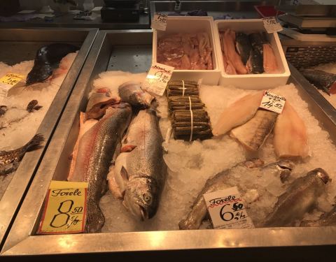 特别是樱桃又大又甜还便宜。水果比欧州其它国家来,太便宜了。鱼市场内三文鱼太多还有各种鱼眼花聊乱