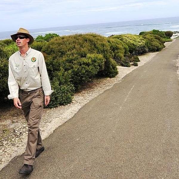 这位就是我们的导游,我们必须要由导游带领参观且不能脱队。远远的望见海滩,天气非常好,蓝天碧海被美国国家地理杂志评为“亚太第一岛”的袋鼠岛,除了有绵长的海岸线、高耸的悬崖峭壁,最吸引人的要数其独特的野生动物诸如袋鼠、野生考拉、沙袋鼠、企鹅、海狮等,它们可与人类亲密相处,因此袋鼠岛被称为“没...被美国国家地理杂志评为“亚太第一岛”的袋鼠岛,除了有绵长的海岸线、高耸的悬崖峭壁,最吸引人的要数其独特的野生动物诸如袋鼠、野生考拉、沙袋鼠、企鹅、海狮等,它们可与人类亲密相处,因此袋鼠岛被称为“没有围栏的动物园”。