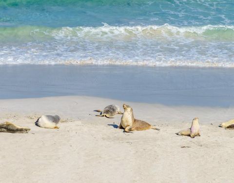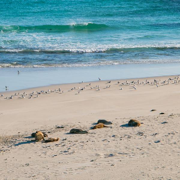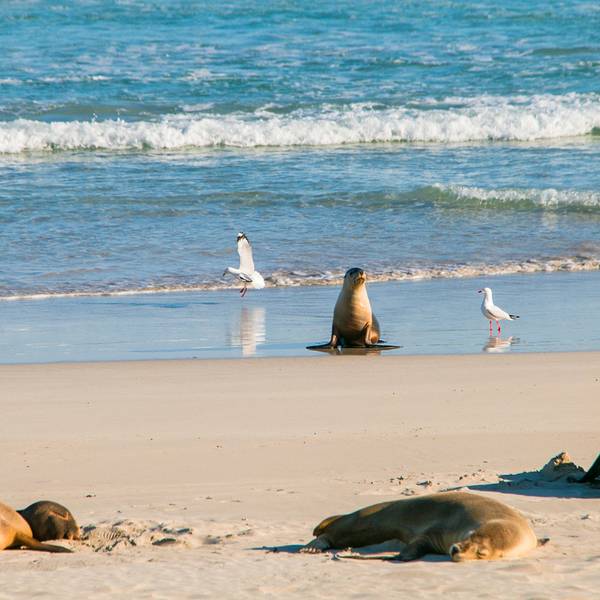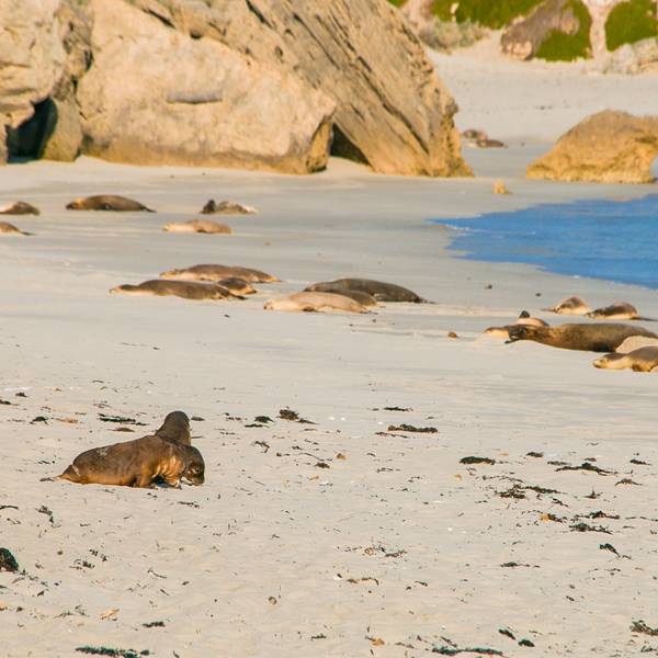 海豹湾以其庞大的稀有动物群——— 澳洲海豹群而著称,要知道这也是澳大利亚唯一一处游客可与海豹在沙滩上近距离接触的地方。