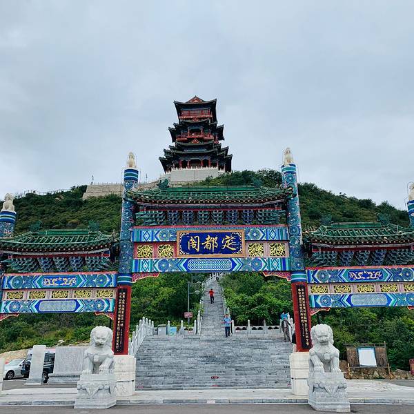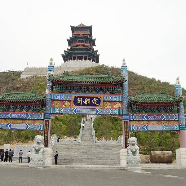 定都阁位于北京市门头沟区潭柘寺镇定都峰上,占地面积为550平方米,建筑面积约2400平方米,地上高度为33.9米,共有6层,外观看为3层,为古色古香的中式建筑造型。