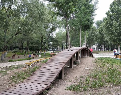...一个门脸不大,里面确很好的,被民宅包围的公园,有树,有湖水,有花,有亭子,有沙滩,可以玩够一天