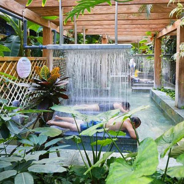 3、选择适应自身的高、中、低温度的温泉池,一从低温到高温,每次15-20分钟即可。