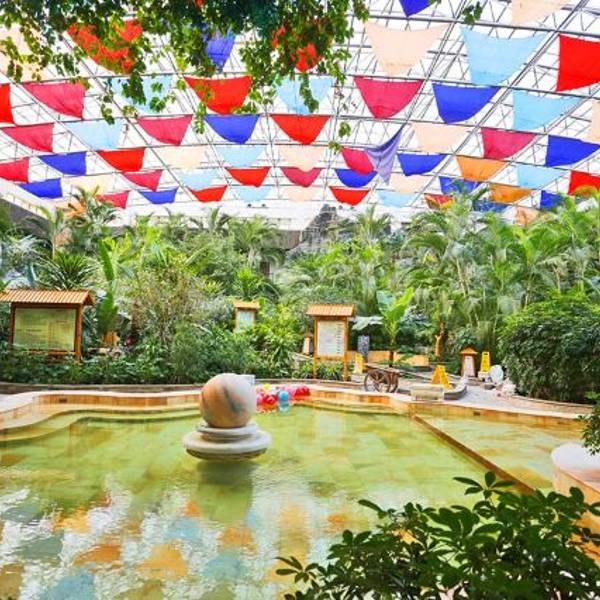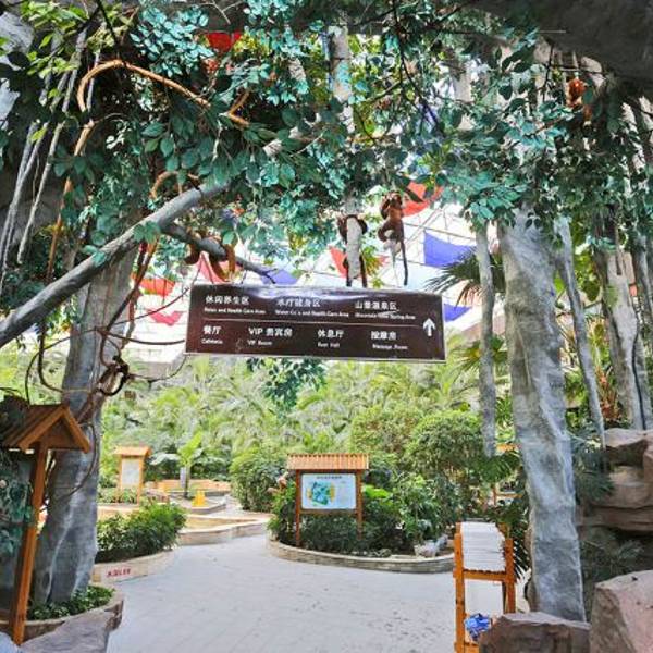 温泉乐园大厅。温泉乐园分为静态疗养温泉、动态水疗温泉和室外山景温泉。