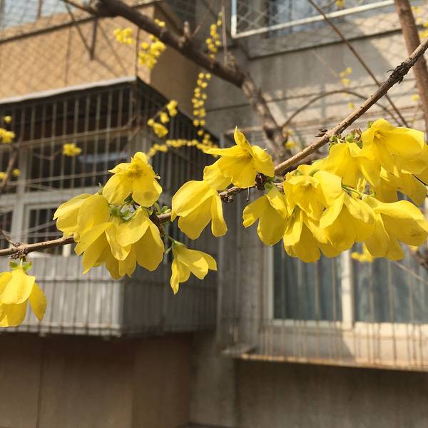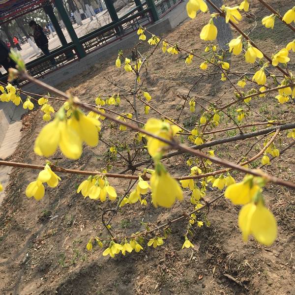 连翘早春先叶开花,花开香气淡艳,满枝金黄,艳丽可爱,欲与迎春来争娇。