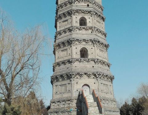 是辽代的空心砖塔,2013年被定为国家重点文保单位。门票5元,没有寺庙了,塔前搭的佛像不伦不类,还根据传说修了个孟良焦赞墓。此条点评时,公园因绿化工程进行中,暂时不开放。