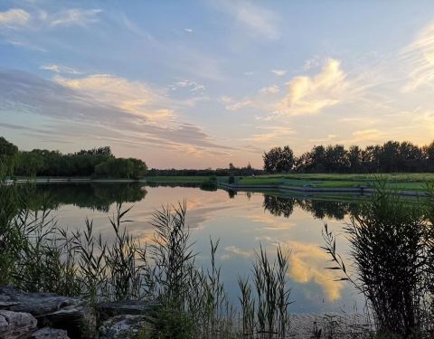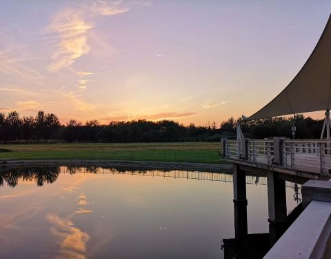 在北京亦庄地位,在寸金寸土的开发区里,管理者匠心独运的建设了一个国际企业文化园,这里湖面开阔,森林覆盖率高,而且倒影成趣,美极了。