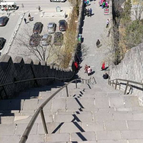 上了城墙内,我往两边看了看,强度都差不多,都够陡的。毕竟是开发过的景区,游客不少令我失了很多兴趣,也就想爬上第一个城楼环顾一下即可。