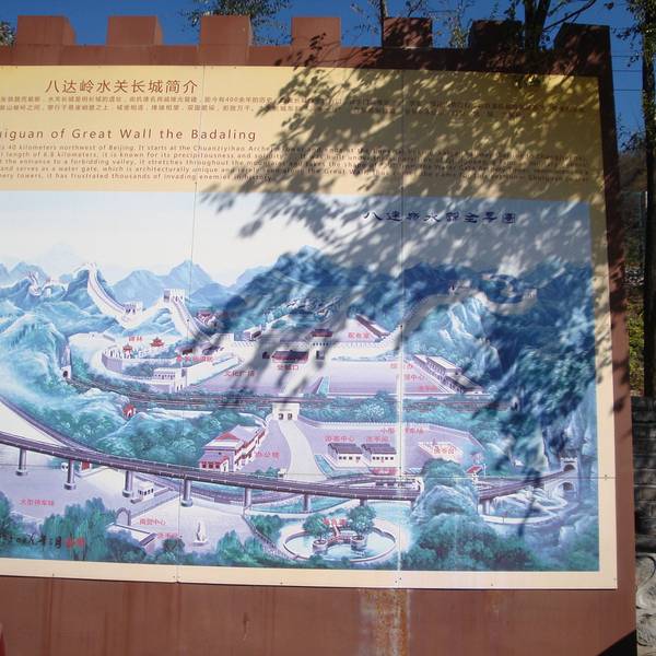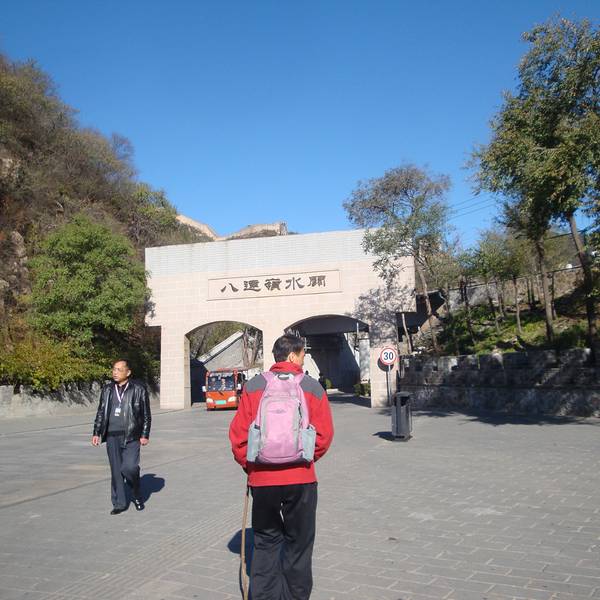 在百度地图上查的时候,只查到公交的乘车方式,地铁2号线积水潭站出来,步行到德胜门正后方乘877路公共汽车直达八达岭长城脚下,每人现金12元(导游费+车费),刷公交卡只需4.8元,到站需要1小时左右,当中不停站。运行时间:6:00-12:00。当天因为小五培训那边有事耽搁,最后我们赶到积水潭站出来已经12:00了,在问路怎么到到德胜门车站的时候,旁边有人和我们说877路快速公交已经走了,现在慢速的公交到那里要3H。然后和我们说坐私家车,每人140元来回。左右衡量之后,我们上了私家车,车程大约1H,经过高速,然后到了水关长城。当时也没反应过来水关长城不是八达岭长城,只是一直奇怪为什么没看到缆车。门票40/人。发现长城很短,没爬多久就截断了,就是很陡峭,人也不多。很久之后才发现被骗了,水关长城是八达岭长城的东段部分,这段长城建于险谷口,自水门箭楼长城呈“V”字型,顺应山势而行,比八达岭长城短很多。郁闷。