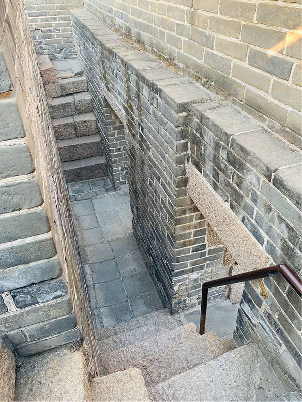 水关长城的敌楼内修缮的很新,方方正正的透着齐整。我带着刚才在八达岭古长城留下的疑惑,来到这里找寻,果然看到了被封闭起来的敌楼内通往二层的通道楼梯。