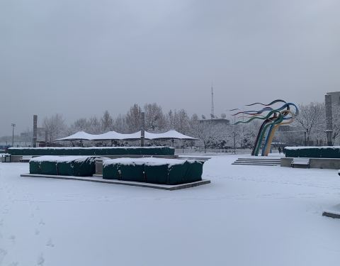 2020年北京的第一场大雪,永安公园白茫茫一片,没了晨练的人们,没了广场舞音乐