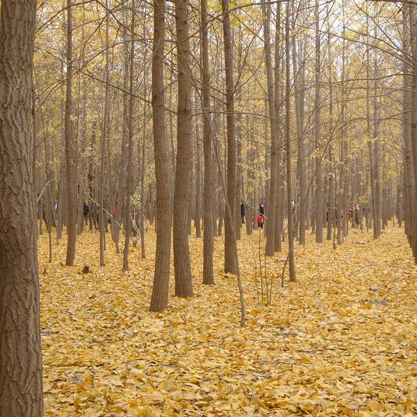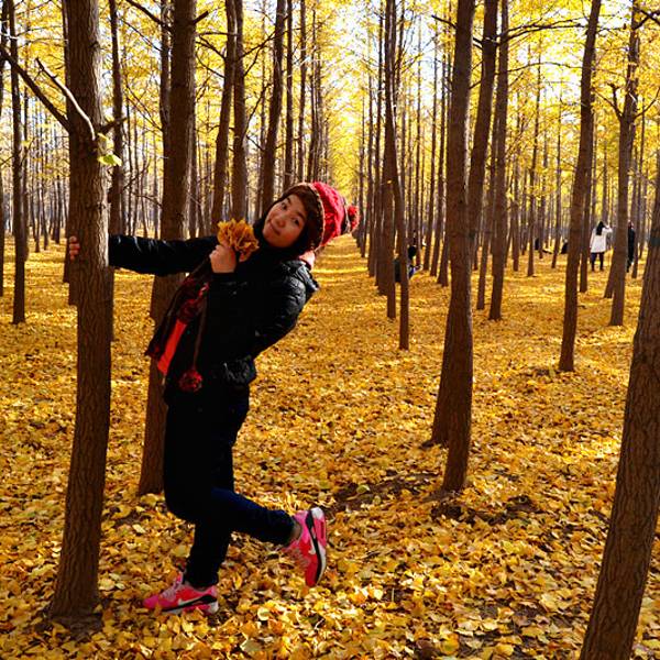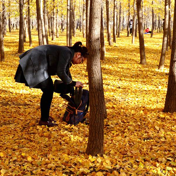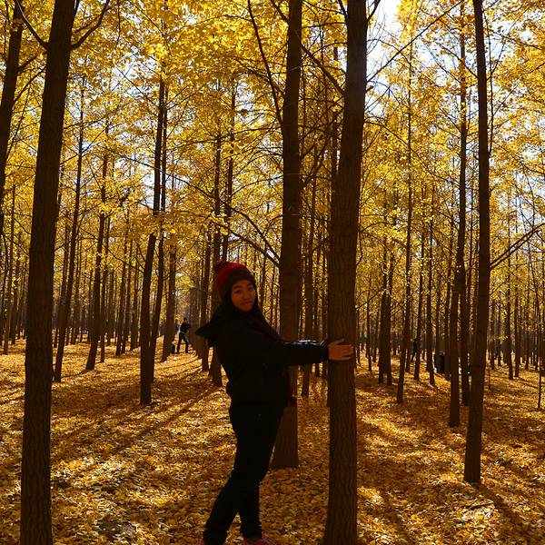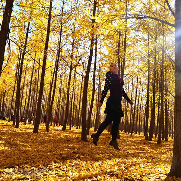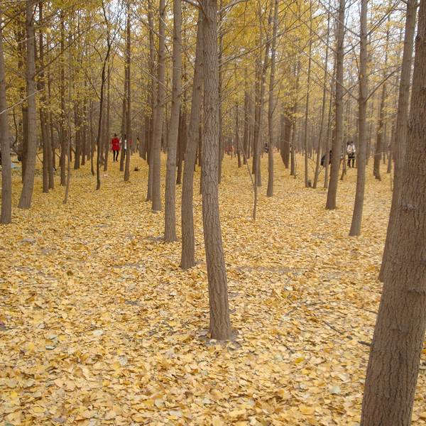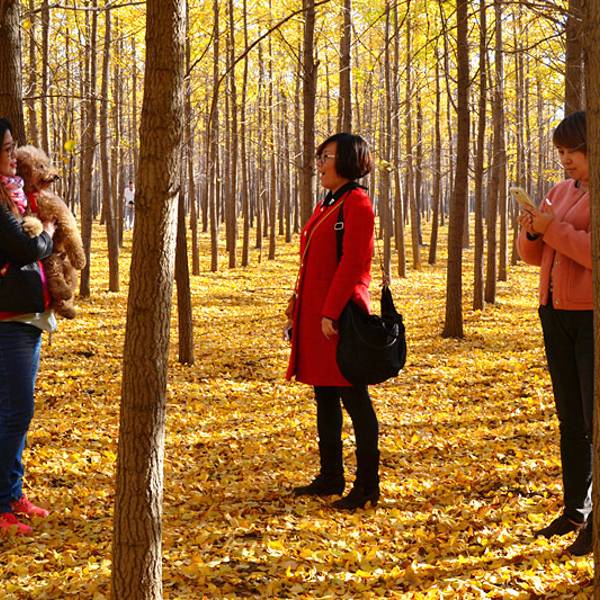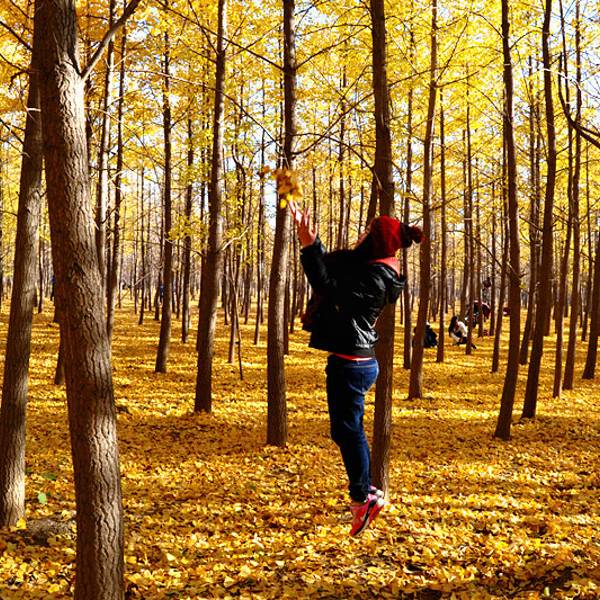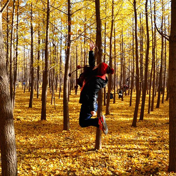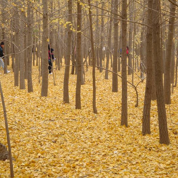 10月底我们自驾去了位于昌平区的张各庄银杏林(就在京密引水渠边上,比较好找),不巧,到那里一看,银杏叶都快掉光了,不过,你依然可以感觉很美,金黄的银杏叶,像是给大地披上了金色的地毯,穿行其间,好像游走在色彩斑斓的童话世界里,很是陶醉(有不少小孩子在里面游玩打闹)。张各庄的银杏林,地方不是很大,都是一些小中型的银杏树,但栽种的比较密,因密集成林,故吸引了不少游人去观看,还有不少摄影爱好者,是拍摄银杏题材片片的好地方。