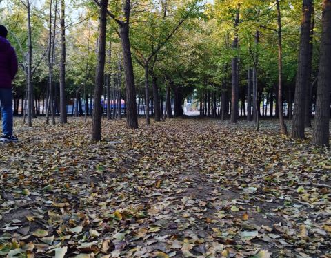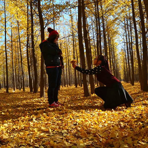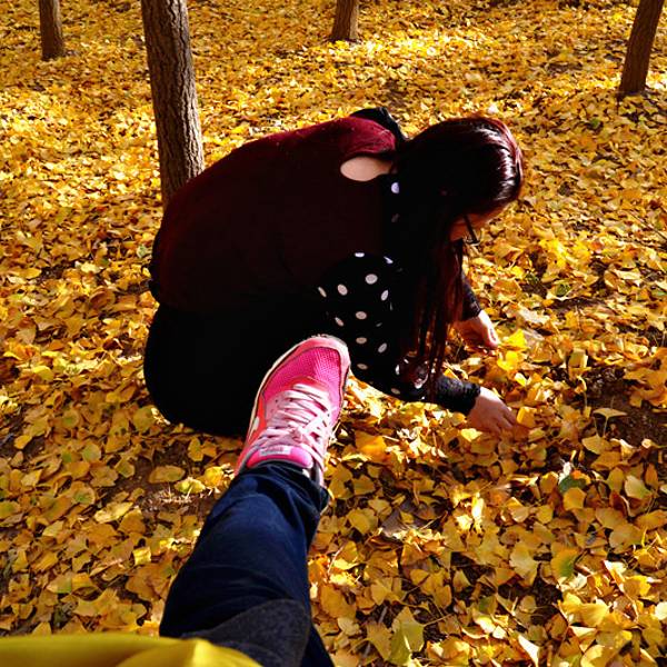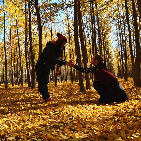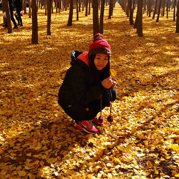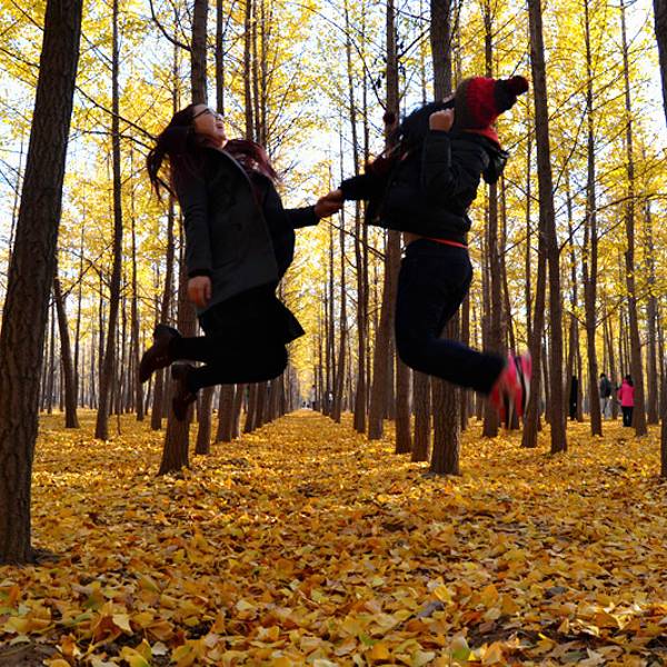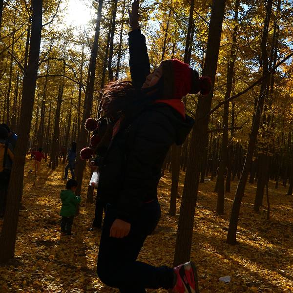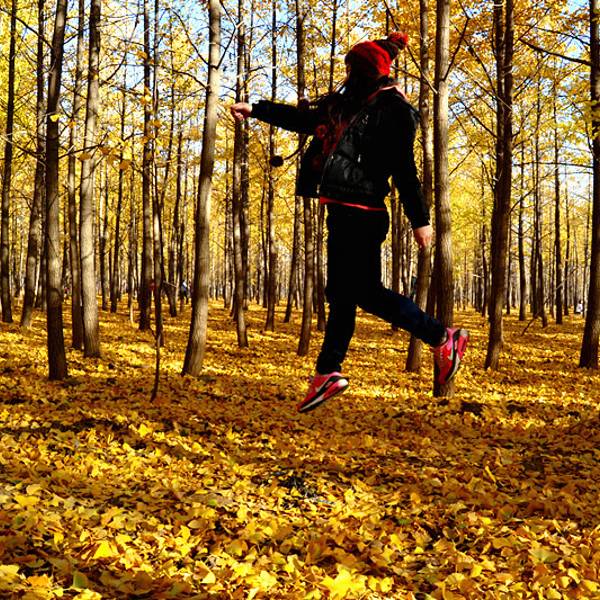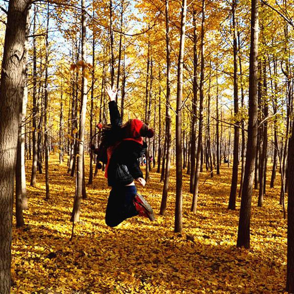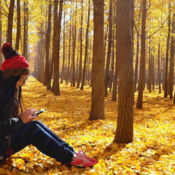 10月底我们自驾去了位于昌平区的张各庄银杏林(就在京密引水渠边上,比较好找),不巧,到那里一看,银杏叶都快掉光了,不过,你依然可以感觉很美,金黄的银杏叶,像是给大地披上了金色的地毯,穿行其间,好像游走在色彩斑斓的童话世界里,很是陶醉(有不少小孩子在里面游玩打闹)。张各庄的银杏林,地方不是很大,都是一些小中型的银杏树,但栽种的比较密,因密集成林,故吸引了不少游人去观看,还有不少摄影爱好者,是拍摄银杏题材片片的好地方。