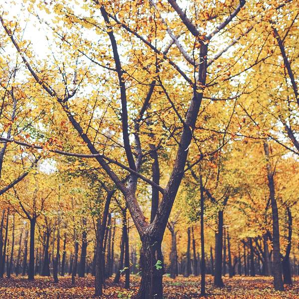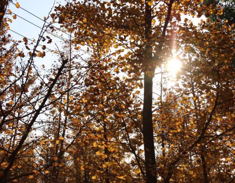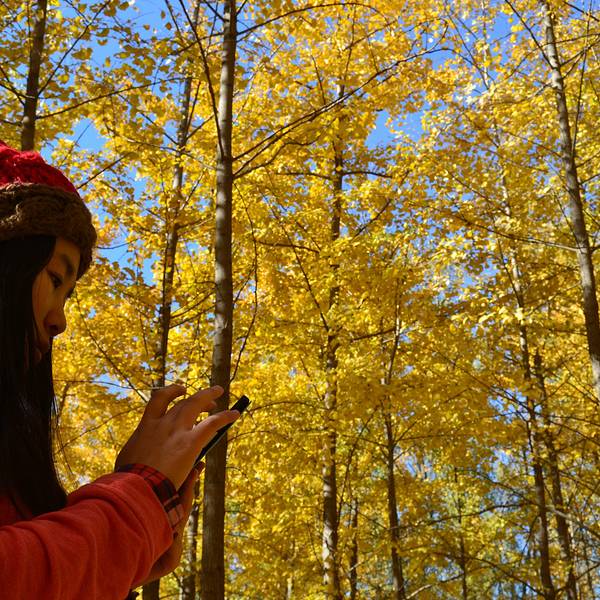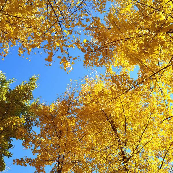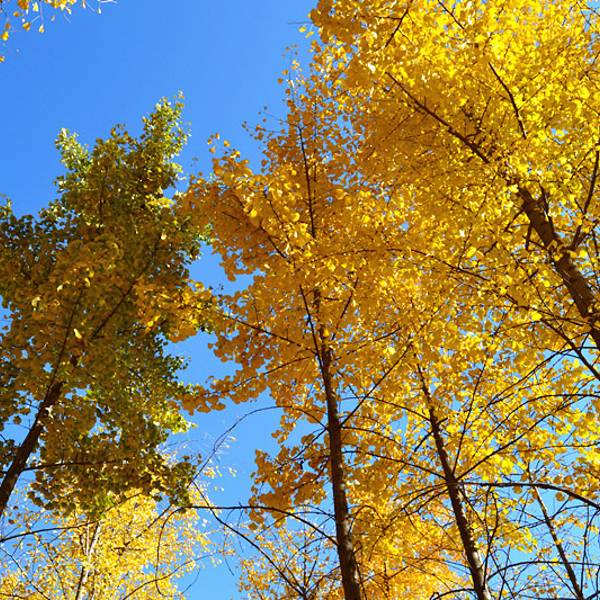每当10月中下旬,银杏树叶都会变成耀眼的金黄色,它们或挂在枝头,或飘落地面