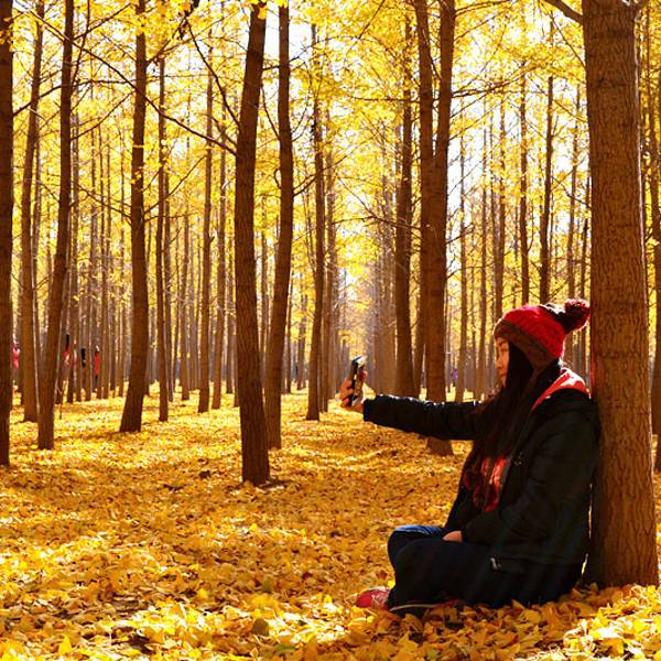 进入到这里好像整个世界都被染成了金黄色 选择到这里的时间最好赶在天气好的时候它们或挂在枝头或飘落地面 . 昌平银杏林昌平银杏林