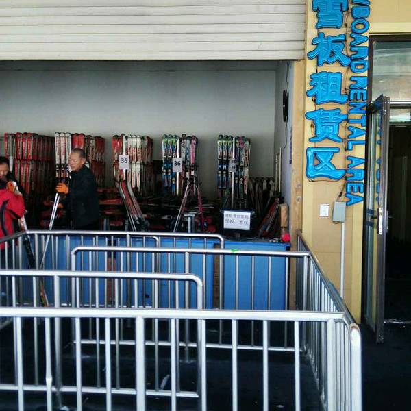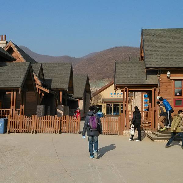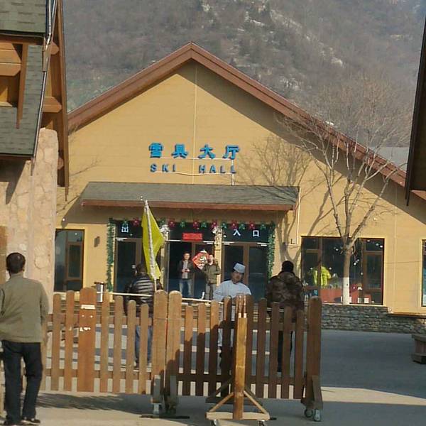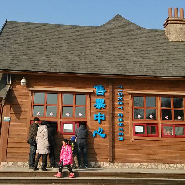 酒店环境优雅,整体设施较新,里面有多栋别墅。滑雪售票中心,滑雪平日128(全天),周末178元(半天)。滑雪场售票中心大门。买好票进门之后需要去雪具大厅领滑雪用具,雪板和雪鞋包含在票里面,柜子和滑雪服是收费的,柜子20元。
