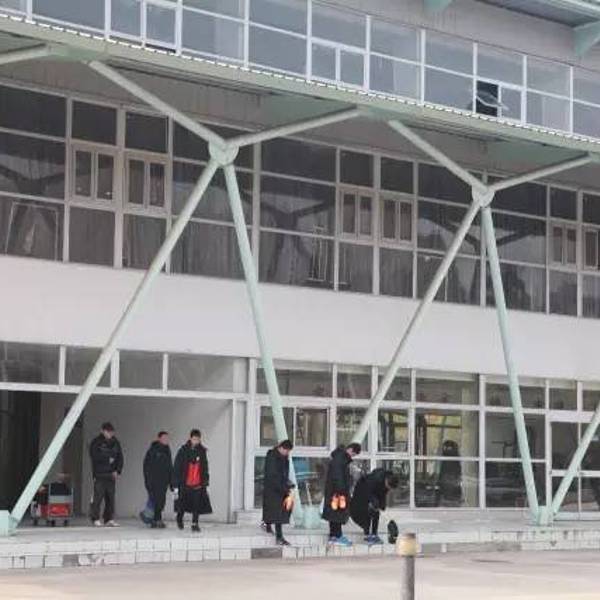 还有一块200m的室内足球场。室内球场的一侧是学员宿舍,