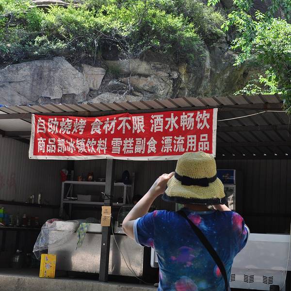从云梦仙境风景区门口往下走2公里来到白河边,一处半露天烧烤地方,事先联系好了的。