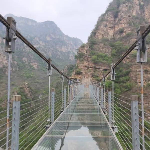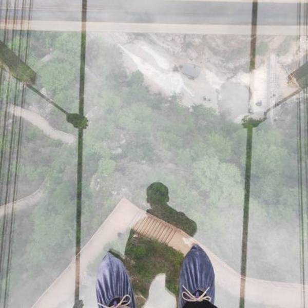 ...上而下俯视峡谷,由于太清晰,下面的景色一览无余,晕高的人是绝对不敢上来,挑战自我也是被需要勇气顺着登山步道拐个弯继续前行,即可到“情天”玻璃吊桥。此桥在天子峰与情人岭两峰绝壁之间,远远的就会看到。这里的玻璃非常清晰干净,从上而下俯视峡谷,由于太清晰,下面的景色一览无余,晕高的人是绝对不敢上...顺着登山步道拐个弯继续前行,即可到“情天”玻璃吊桥。此桥在天子峰与情人岭两峰绝壁之间,远远的就会看到。这里的玻璃非常清晰干净,从上而下俯视峡谷,由于太清晰,下面的景色一览无余,晕高的人是绝对不敢上来,挑战自我也是被需要勇气。这种钢化三层夹胶玻璃,坚固无比、安全可靠。 展开