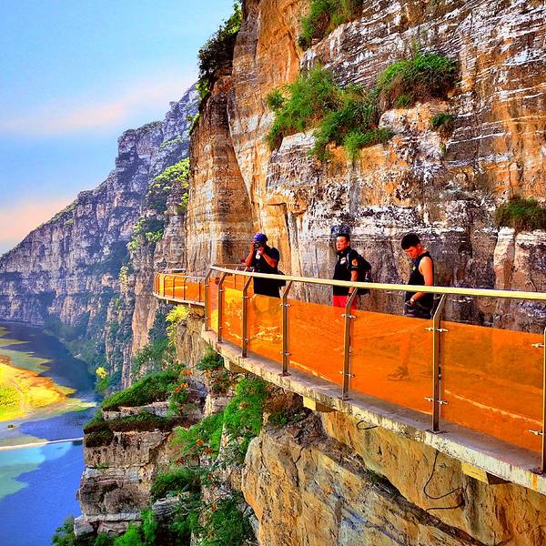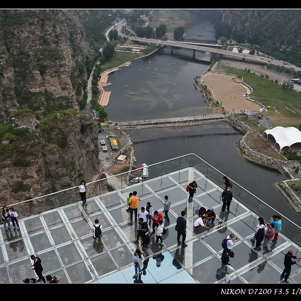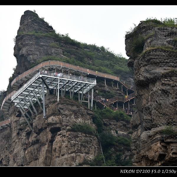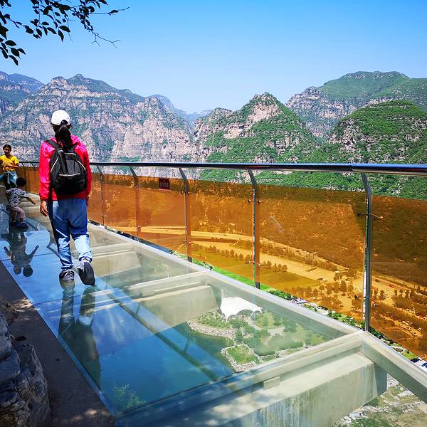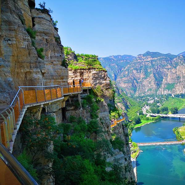 此栈道建造在乐谷银滩景区的主峰,雄伟的太行山脉之上。环山而建,犹如镶嵌在山间的一条黄丝带从山门进来之后,我们选择先去登山,从右手边上去体验玻璃栈道。此栈道建造在乐谷银滩景区的主峰,雄伟的太行山脉之上。全长168米,高300余米,且挑战了跨度2米,玻璃净宽2米,堪称华北区域内最长、最险、最惊心...从山门进来之后,我们选择先去登山,从右手边上去体验玻璃栈道。此栈道建造在乐谷银滩景区的主峰,雄伟的太行山脉之上。全长168米,高300余米,且挑战了跨度2米,玻璃净宽2米,堪称华北区域内最长、最险、最惊心、落差最大的玻璃栈道。环山而建,犹如镶嵌在山间的一条黄丝带。此处是绝佳的观景之地,站在这里举目远眺,绿水青山,蓝天白云,触手可及。俯瞰湍急的拒马河从脚下缓缓而过,此刻倒映在水中的山脉就像一个大鼻子的老人,此情此景唯美。这里可以拍到拒马河全景,难得哦。想要在这里拍出好看的人像,一定要找拐弯的地方俯拍,这样人与拒马河就完全收入在镜头中。如果你够胆也可以坐下来拍,要在没人的时候拍,避免影响别人通行。 展开