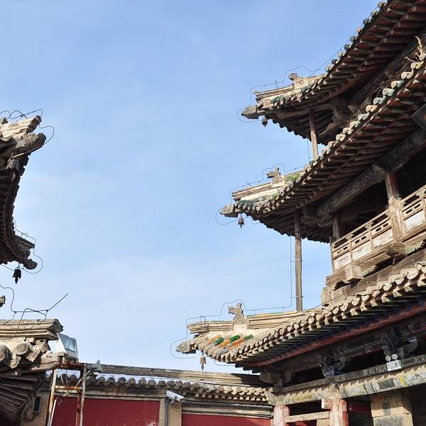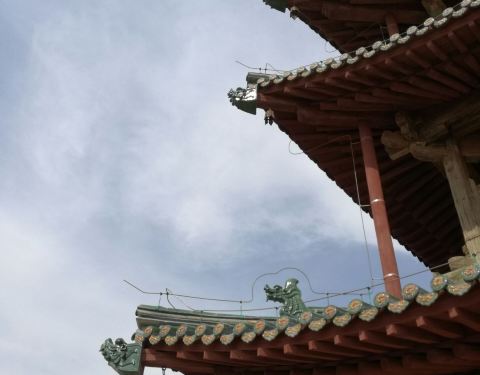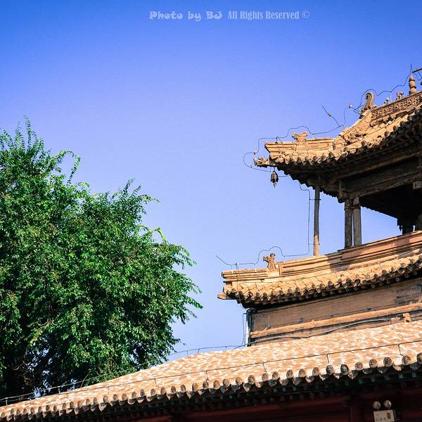 “大娘,我现在能看到的那座建筑是什么啊?”我指着我可以看到的那突出的古建筑的屋顶跟她求教。